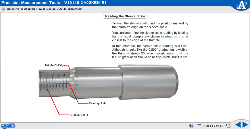The 990-MES1 features a comprehensive measurement curriculum to teach the theoretical knowledge necessary to understand more advanced topics and applications. Within this curriculum, learners will study topics such as: stating the typical accuracy of a dial caliper measurement and explain what affects it; using an outside micrometer graduated in English units to measure the outside dimension of a part, and describing the function of a gauge fixture. This curriculum is presented in a stunning, interactive multimedia format. Each topic’s presentation includes extensive videos, 3D animations, interactive exercises, and colorful graphics that will motivate students and help them learn more effectively.