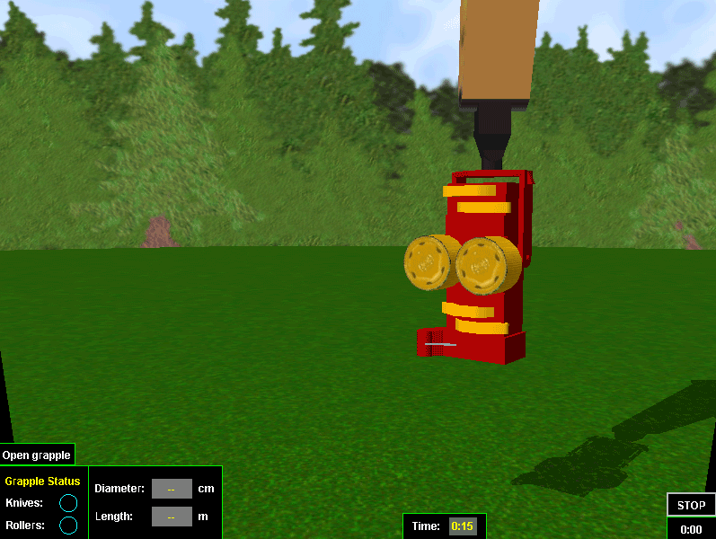The objective of Module 1 is to learn to control the functions of the harvester head by mastering the push-button “grips” mounted on the operator joysticks.