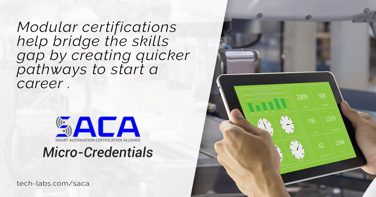 If interested in creating micro-pathways one of the best ways SACA says is to begin creating partnerships with industry leaders in your area and determine what kind of jobs and skills they are looking for. SACA offers micro-credentials in many areas, including electrical, motor control, programmable controllers, mechanical, pneumatics, hydraulics, automation, Industry 4.0 technologies, robotics, electronic sensors, smart factory operations, process control, Ethernet communications, networking, data analytics, and predictive maintenance. If you’re ready to start paving the way with micro-pathways and micro-credentials, contact Tech-Labs at sales@tech-labs.com or call 800-445-1088.