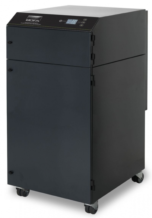 BOFA’s AD 1000 iQ high-end laser extraction system combines extremely large filter capacity with high airflow and pressure rates, making it the ideal choice for heavy-duty applications that generate large amounts of particulate and gaseous organic compounds.