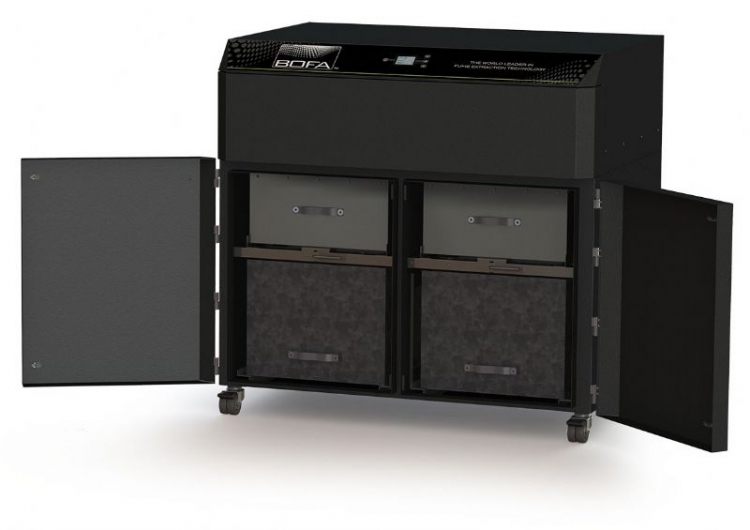 BOFA’s AD 1000 iQ high end laser extraction system combines extremely large filter capacity with high airflow and pressure rates, making it the ideal choice for heavy-duty applications that generate large amounts of particulate and gaseous organic