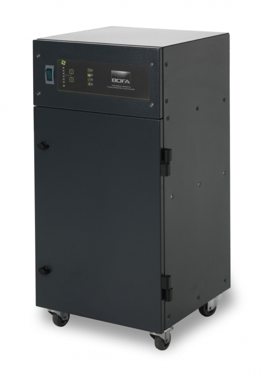BOFA’s Advantage 350 fume extraction and filtration system effectively removes potentially harmful fumes and particulates created during the laser marking process.