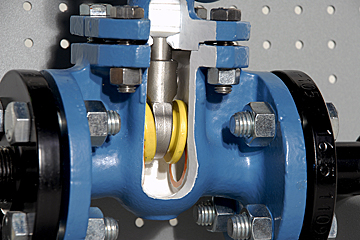 DAC Worldwide's Downsized Ball Valve Cutaway (253D) is an economical yet realistic, sectioned valve sample that allows for convenient classroom training in industrial ball valves' design, construction, and maintenance. Through carefully-planned sectioning and color-coding, the complete internal configuration of the valve is exposed and showcased. This tabletop sample supports training in a variety of process-related industries.