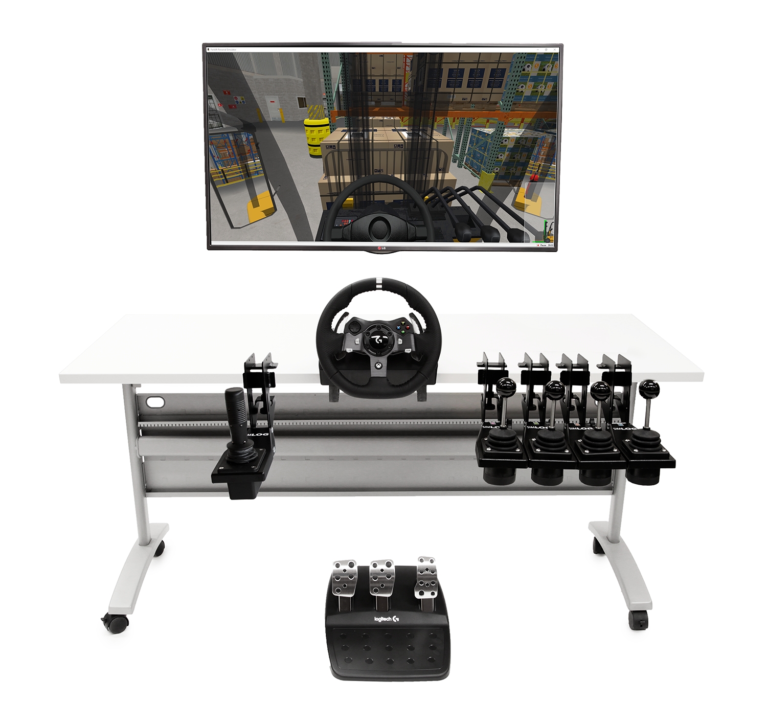 Simlog’s Forklift simulation software, can be used with USB-ready PC Controls consisting of off-the-shelf PC input devices. Compared to Replica Controls, PC Controls are inexpensive and available all around the world.