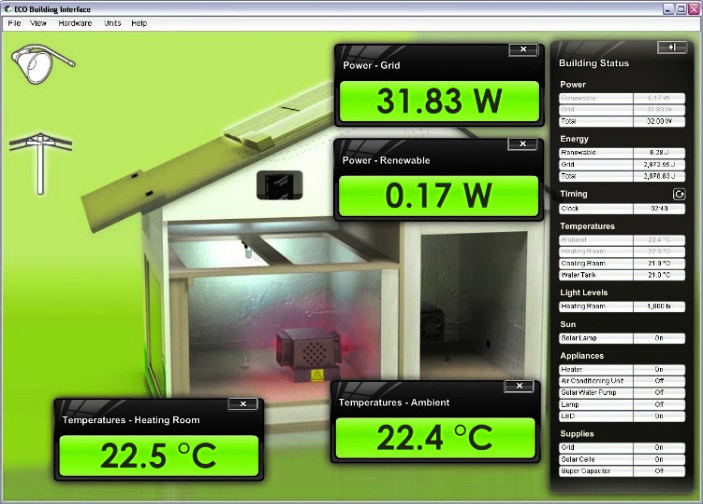 - Real-time Data: The interface software provides real-time energy consumption data, temperatures, and light levels within the building.