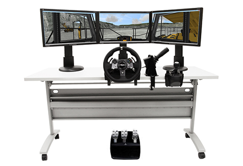 Compared to Table-Top Mounting Brackets, Simlog’s Operator Chair offers a superior simulation experience, thanks to an authentic operator seat with consoles for the left and right hands, and a steering column. All are mounted on an industrial platform with casters, for easy portability.