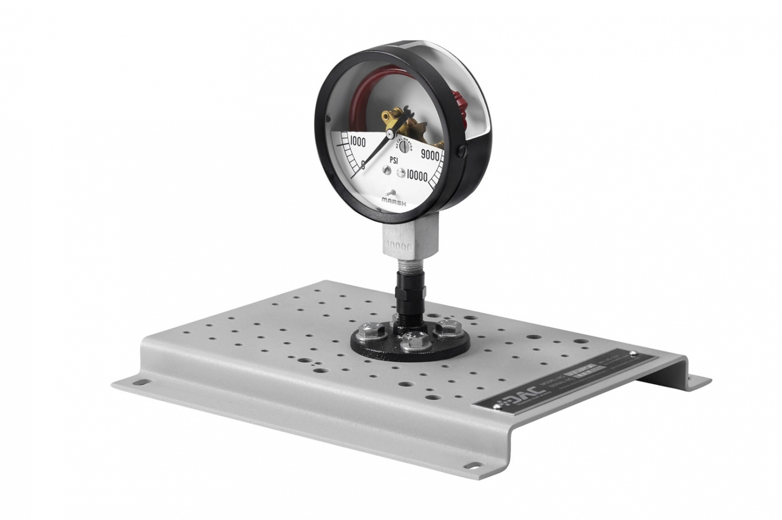 DAC Worldwide's Hydraulic Pressure Gauge Cutaway (773-050) is a Bourdon tube-type pressure widely used in industrial liquid and gas processes to monitor and document system pressures. This professionally crafted, sectioned industrial-quality pressure gauge supports pressure measurement and gauge calibration training in many hydraulic and related process training applications. The full-size, fully-detailed example gives learners a first-hand view into a component that is found in various applications worldwide.