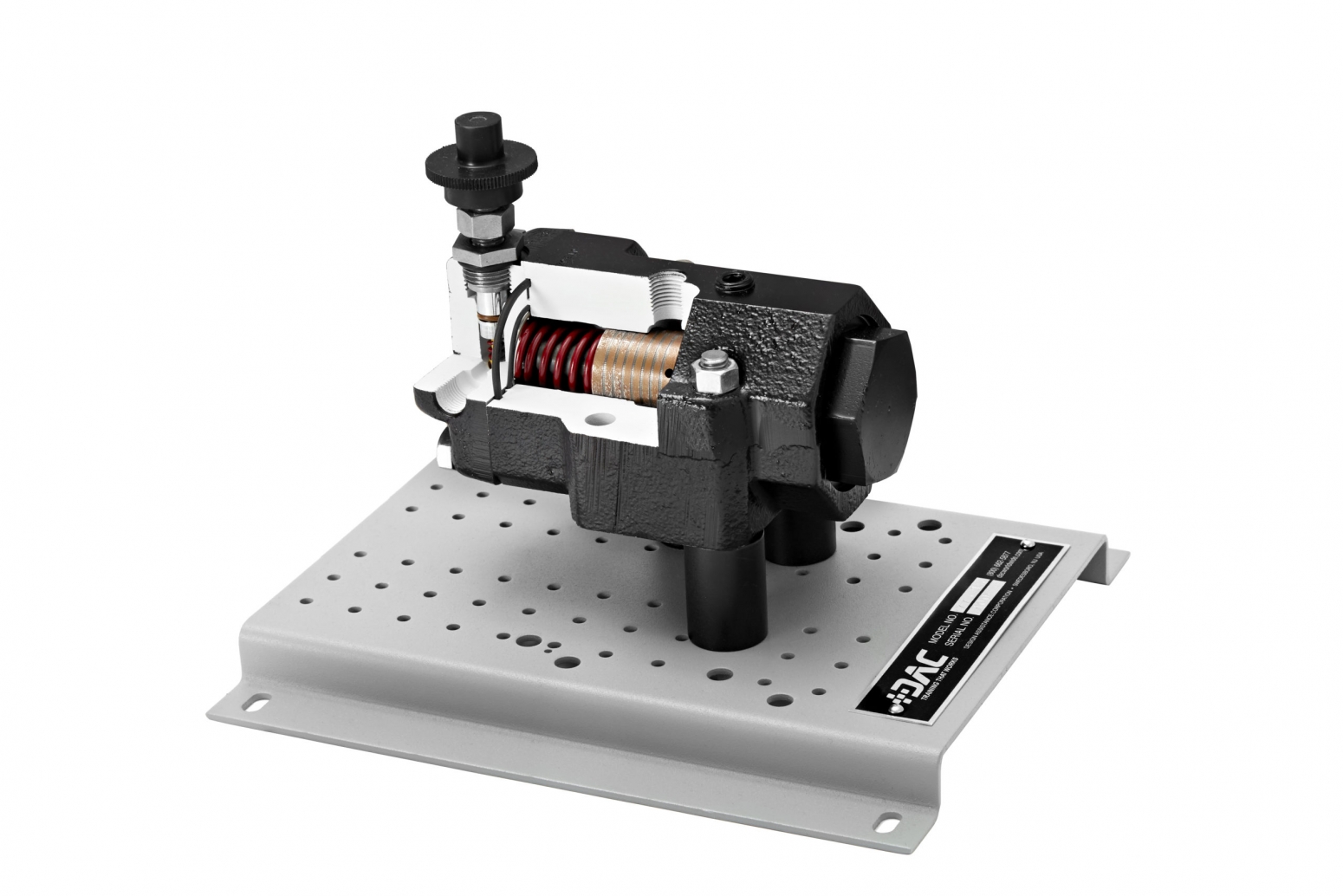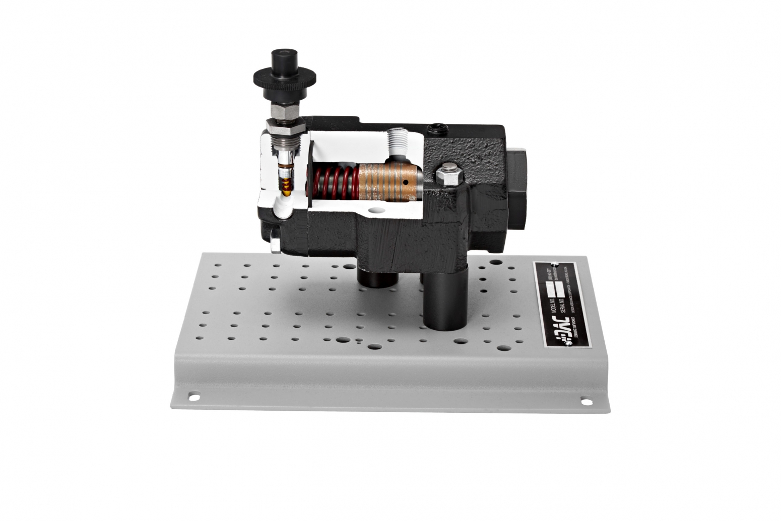 Thanks to carefully planned sectioning, the complete internal configuration of this hydraulic sequence control valve can be seen, while allowing for disassembly for more complete inspection and convenient classroom training in the operation, construction, and maintenance of these common pieces of hydraulic equipment. This professionally-crafted yet-economical component sample will enhance fluid power training activities in both the industrial and the educational setting.
