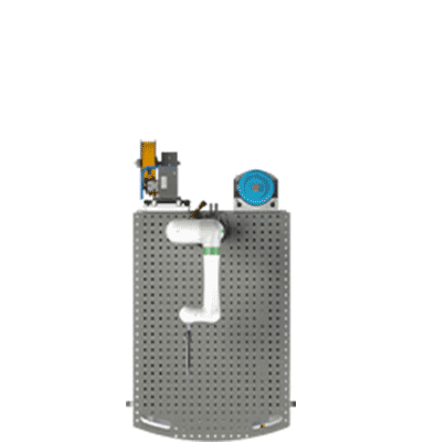 Allows the operator to load/unload the product outside the weld cell, then the rotary table will bring the product into the cell for welding.