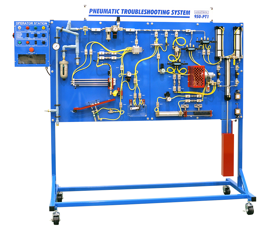 The Pneumatic System Troubleshooting Learning System (950-PT1) from Amatrol delivers unmatched, real-world pneumatic troubleshooting training for education and industry programs. Designed to replicate an electro-pneumatic machine found on the factory floor, this hands-on learning station allows learners to diagnose and correct faults under realistic operating conditions.