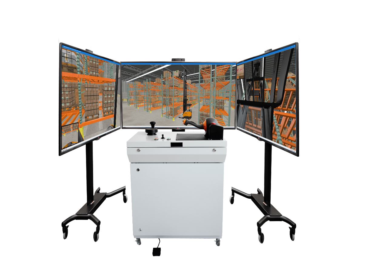 We also offer a (sit-down counterbalance) Forklift Personal Simulator so you train people to operate both kinds of lift trucks with our help.