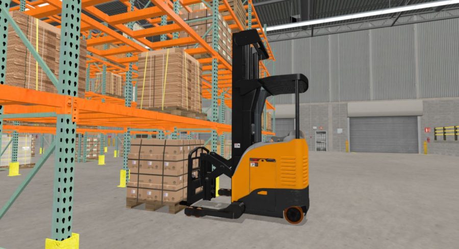 There are many software options to configure what you see and do, to reproduce the operator controls and steering behavior of the most common kinds of (real) reach lift trucks.