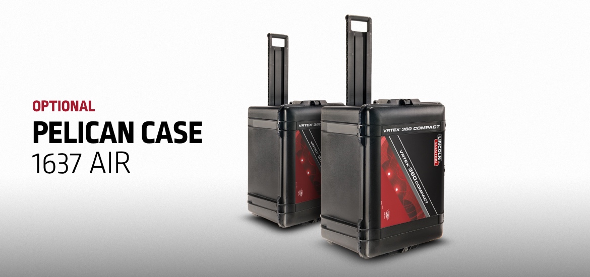 VRTEX® 360 Compact Travel Case Set includes 2 heavy-duty Pelican brand carrying cases to house the VRTEX machine and all accessories.