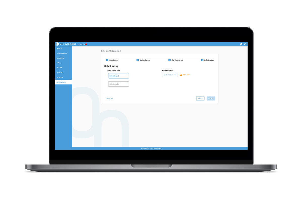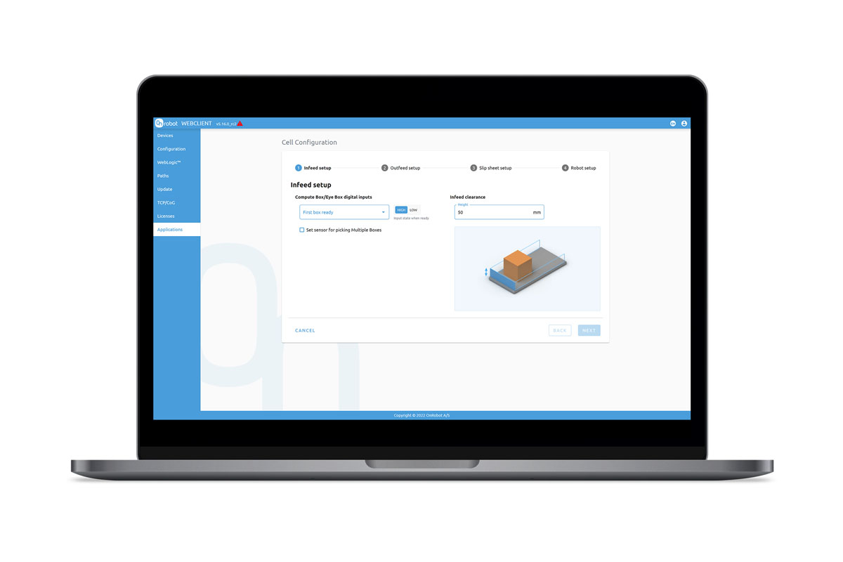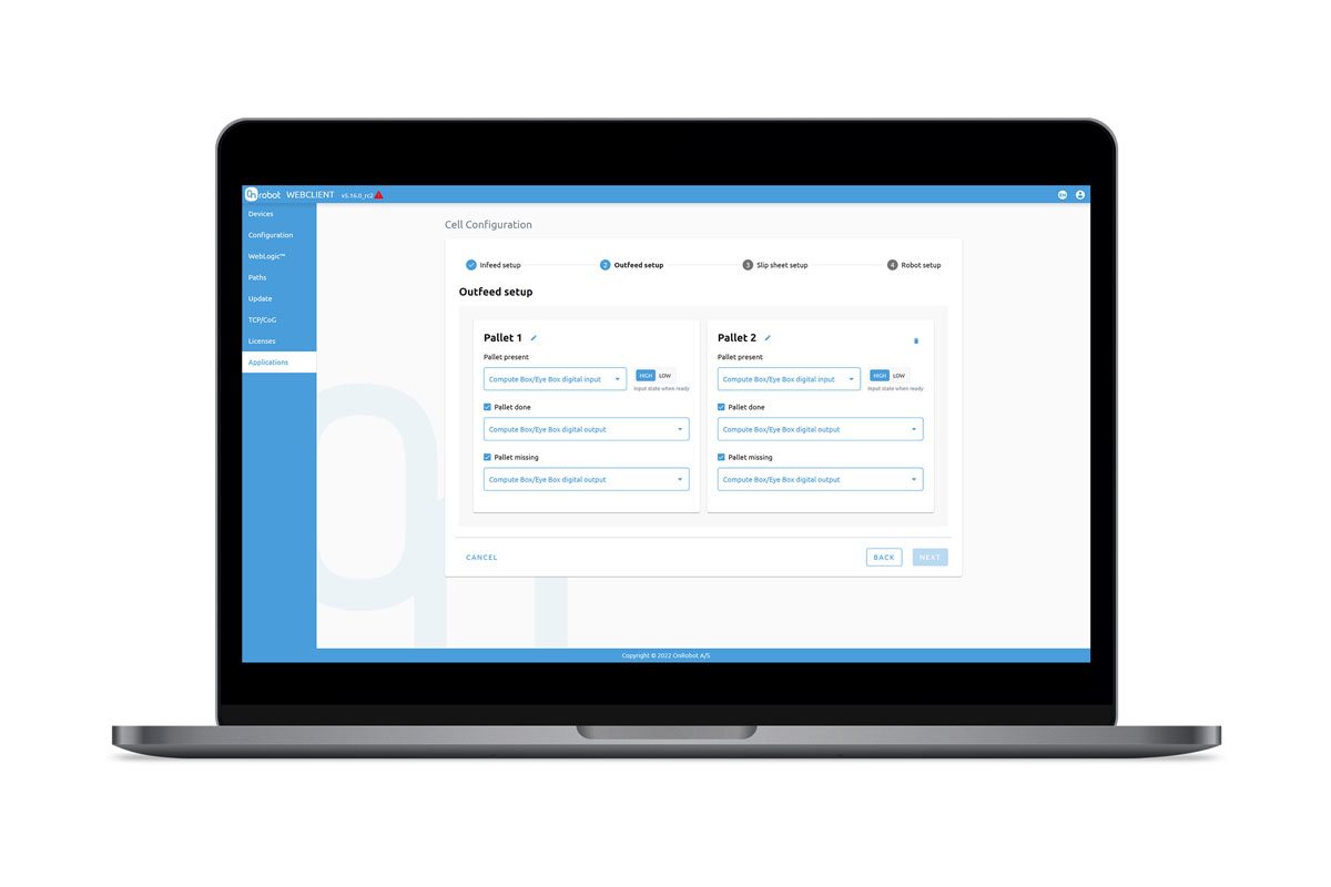 - Fully integrated with OnRobot Palletizer components with automatic detection and settings for gripper and lift