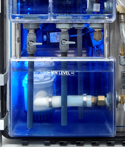 The 990-PC1F includes portable consoles, liquid tanks, a centrifugal pump, a piping network with valves, and a PLC interface. Learners will practice hands-on skills with these components to gain an understanding of how process control equipment works. Skills highlighted by this system include connecting and operating loop controllers and diaphragm actuator proportional valves; using a multimeter to test pressure sensor operation; connecting and operating alarms on a controller; controlling a process using PI control; measuring flow using a paddlewheel flow sensor; and tuning a control loop using the process reaction curve method. All of this capability is contained within a durable ABS plastic case that features wheels and a handle to create a mobile training platform that’s easy to store and transport. The cover is quickly removed to enable the case to sit firmly upright on a table surface for any learner to use anywhere training needs to occur.