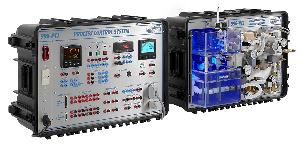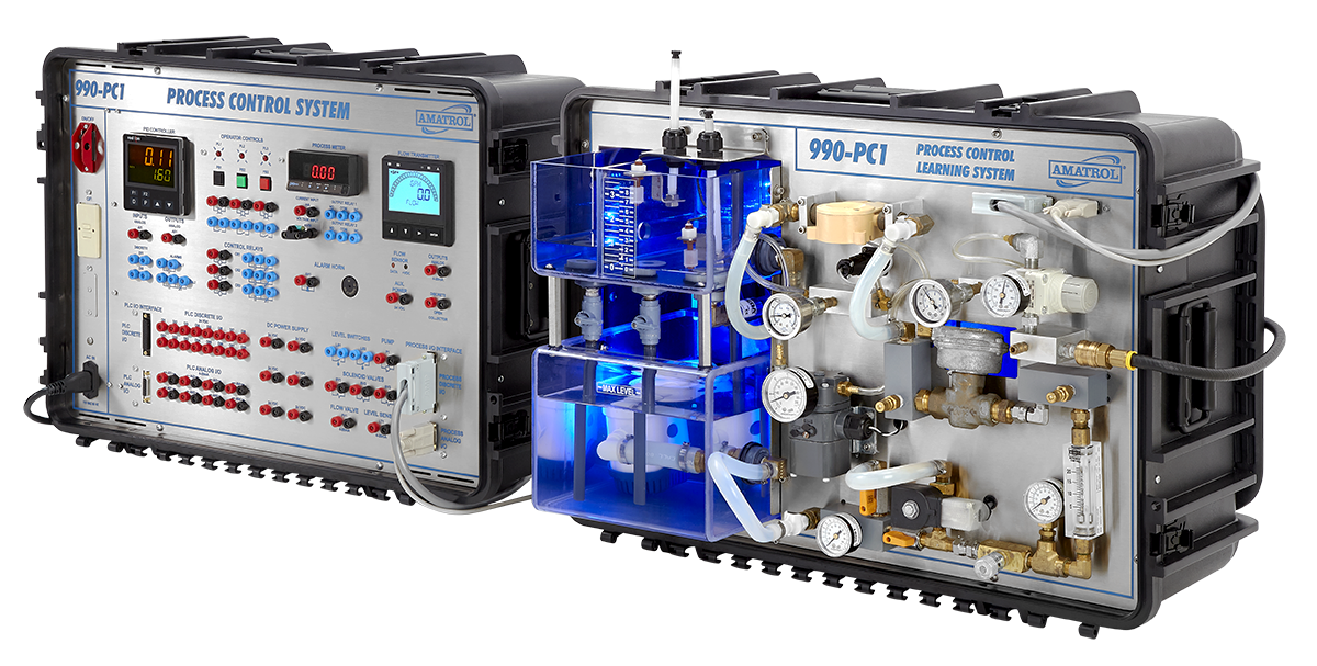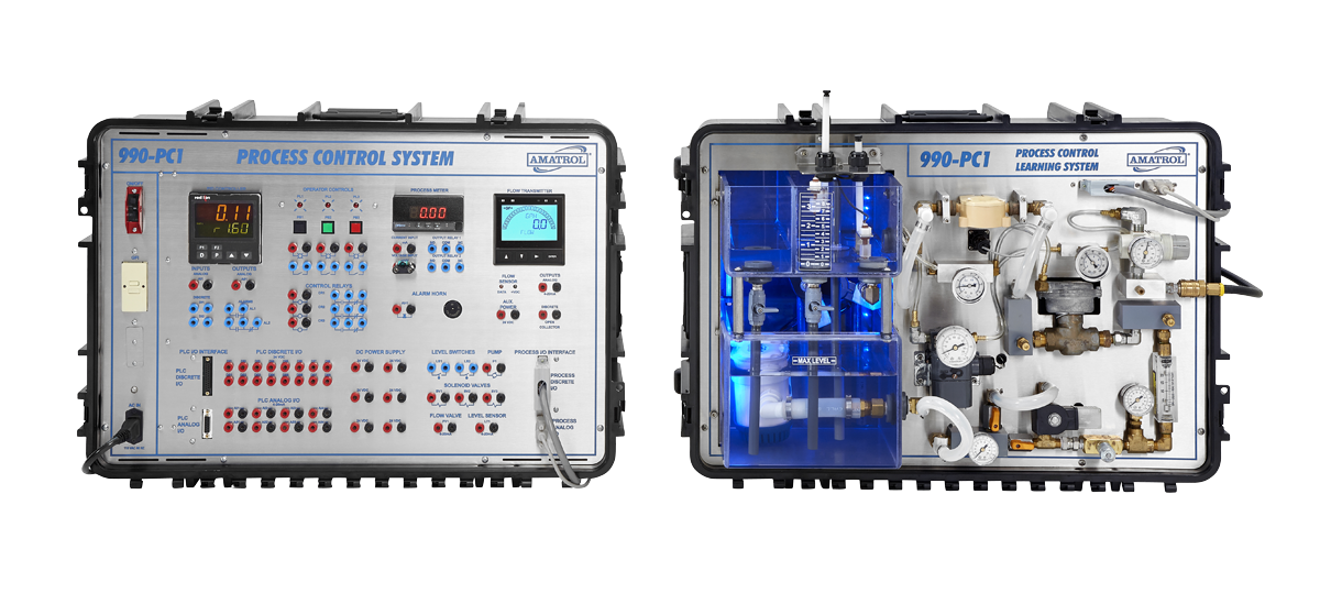 Amatrol’s Portable Process Control Troubleshooting Learning System – Level & Flow (990-PC1F) provides a skill-rich, portable troubleshooting training system for two of the most common types of process control systems, flow and liquid level. The system features eLearning curriculum and hands-on training for subjects like process control equipment safety, loop controllers, level measurement and control, control loop performance, and more.