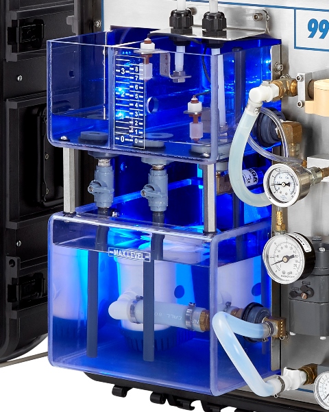 The portable level and flow process control troubleshooting training system features two portable consoles with a variety of real industrial components, including a PID controller, operator controls, process meter, flow transmitter, water tanks, gauges, and Amatrol's exclusive FaultPro electronic fault insertion software. These industrial components will be used to study troubleshooting topics for process control safety, interpreting instrument tags, valve and pump symbols, loop controllers, proportional control valves, display scaling, closed loop liquid level control, proportional control, flow sensors, and open-loop tuning.