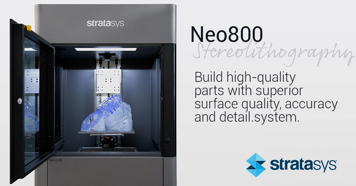 The open-system Stratasys Neo800 3D Printer uses Stereolithography (SL) technology to deliver dependable, scalable fabrication at unprecedented speeds. Harness the power and performance you need to create precise parts efficiently and affordably.